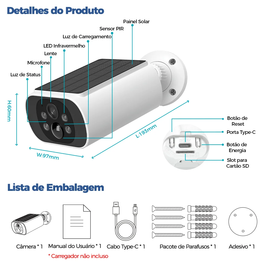 Número do modelo: Wireless Solar Camera Outdoor