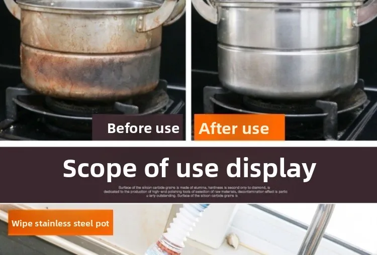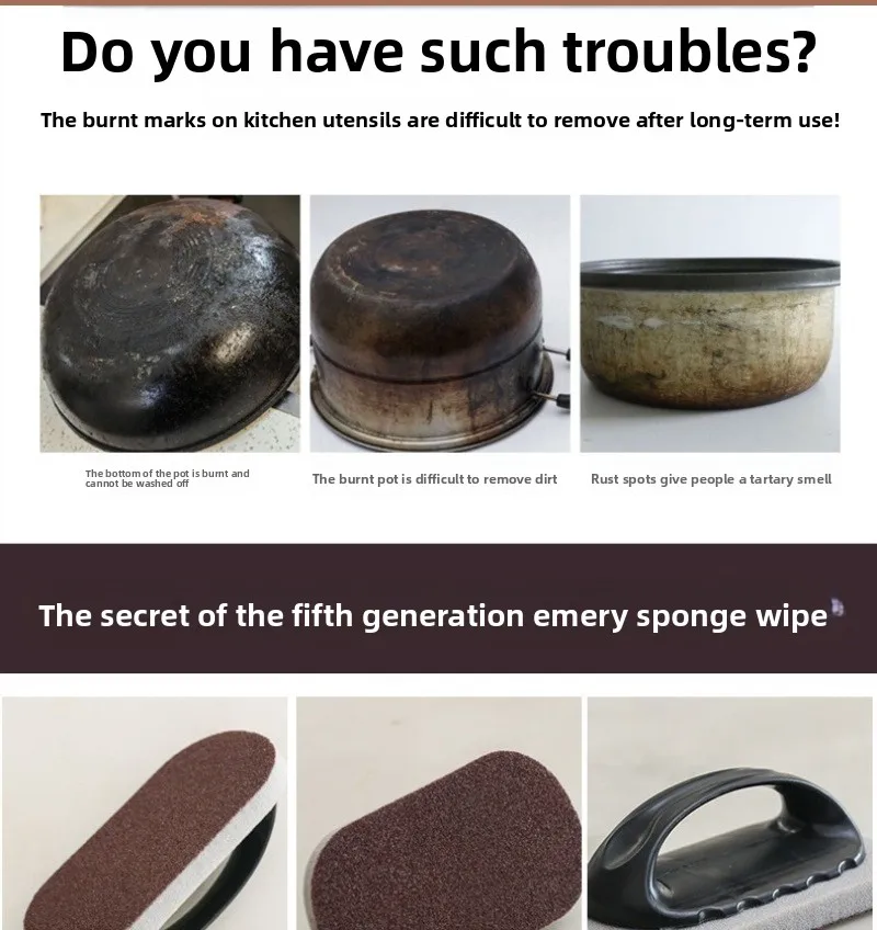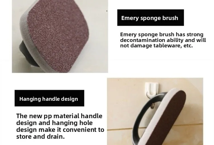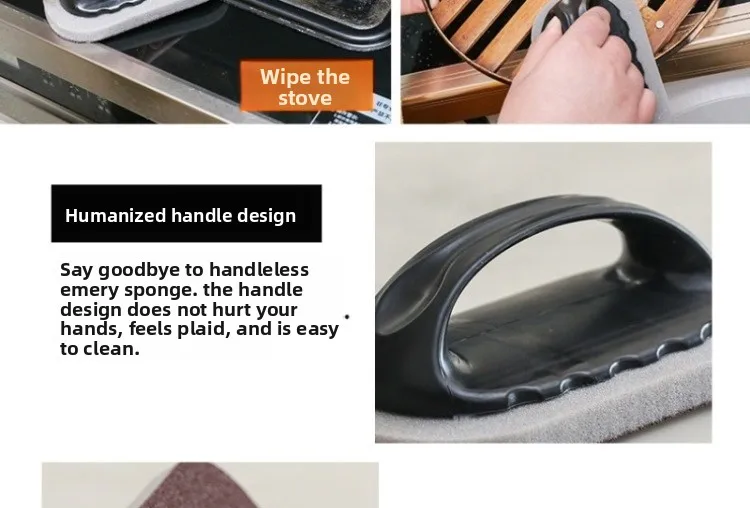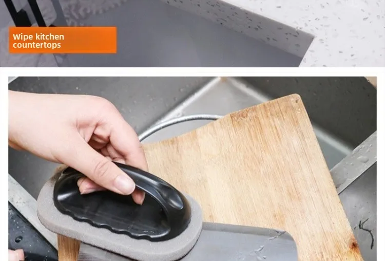 Apresentando uma escova mágica de esponja de esmeril com cabo, oferece limpeza de dupla finalidade para panelas e superfícies.
