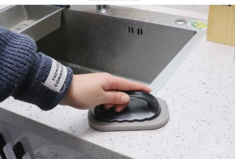 2 pçs escova de esponja de esmeril mágica com alça reutilizável limpar borracha limpador cozinha pote escova forte descontaminação ferramentas limpeza