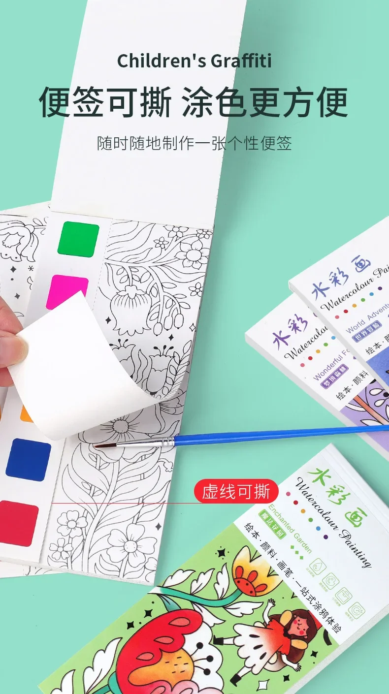 🎨 Livro de pintura em aquarela portátil, 12 folhas, livro para colorir com pincel